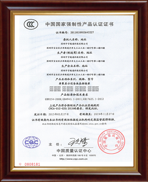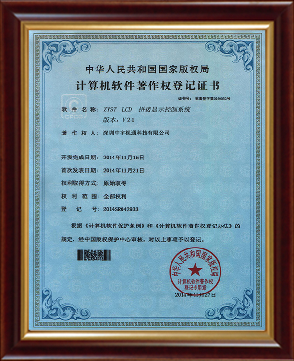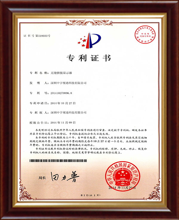 無(wú)縫拼接顯示器專(zhuān)利證書(shū)