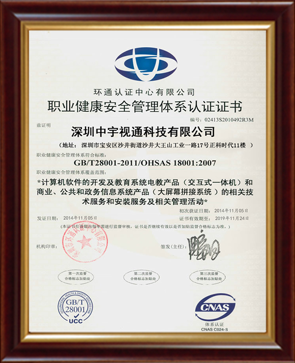 職業(yè)健康安全管理認(rèn)證證書(shū)