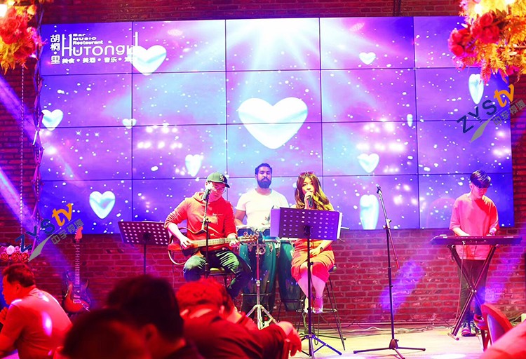 山東煙臺市胡桐里音樂餐廳49寸3.5mm4行5列拼接屏項目采用中宇視通科技拼接屏方案,項目安裝調試完成并順利驗收。