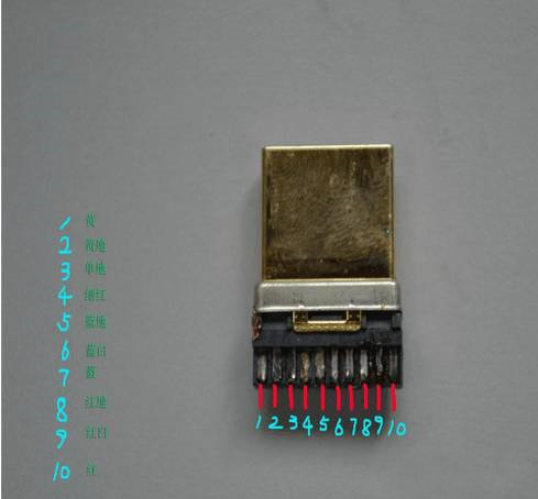 線序介紹1、HDMI線每個生產廠家不同,色序、焊接順序不同,下面以“深圳中宇視通科技有限公司”生產的“HDMI”線為主。HDMI線由19根線組成,如圖。