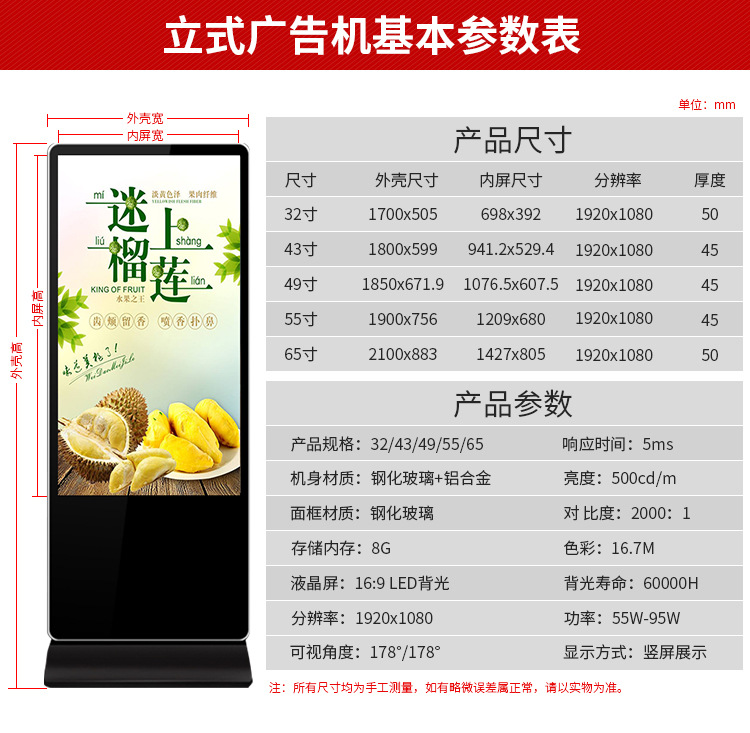 65寸立式廣告機