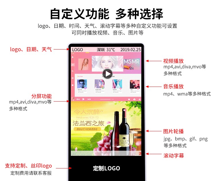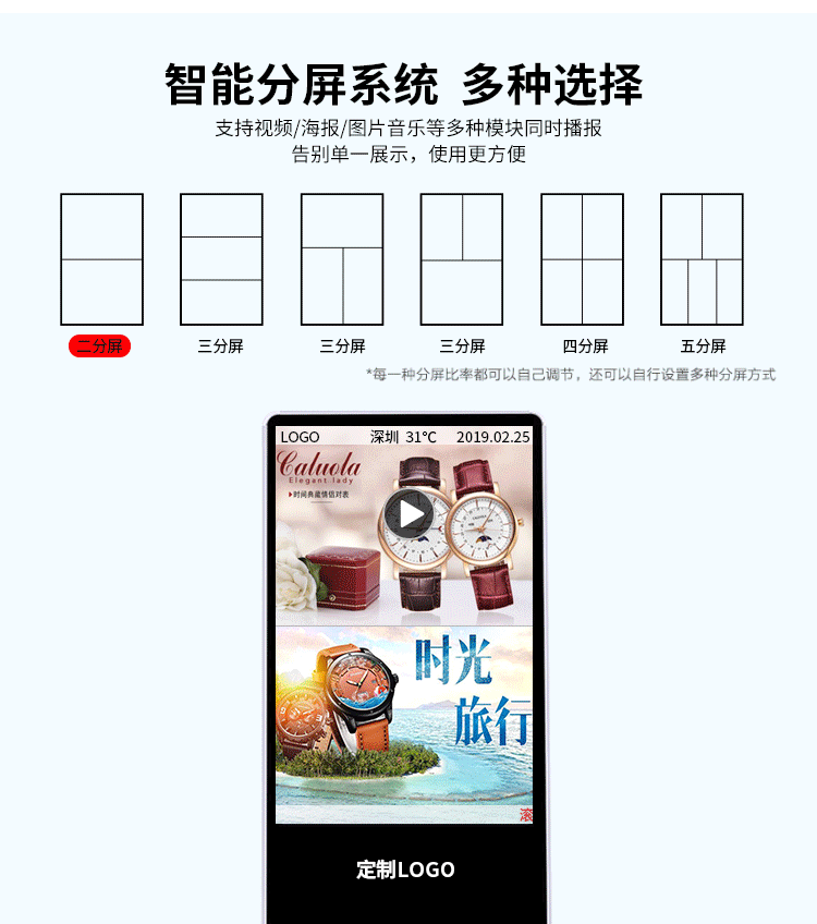 工業級電源系統,自帶恒溫散熱系統,可滿足7*24小時連續不間斷開機播放。